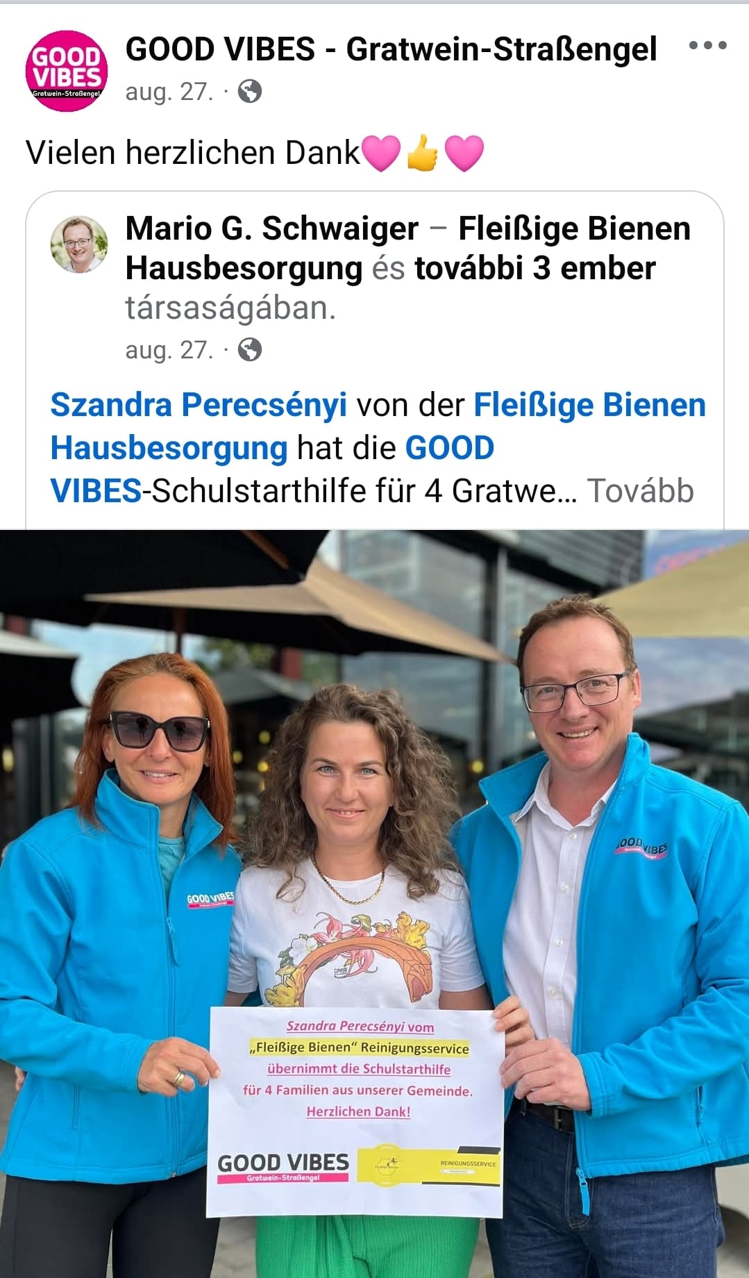 Zum Beginn des neuen Schuljahres 2025 wollte Fleißige Bienen Hausbesorgung der Gemeinschaft etwas zurückgeben – dort wo wir zu Hause sind: in Gratwein. 🐝💛
